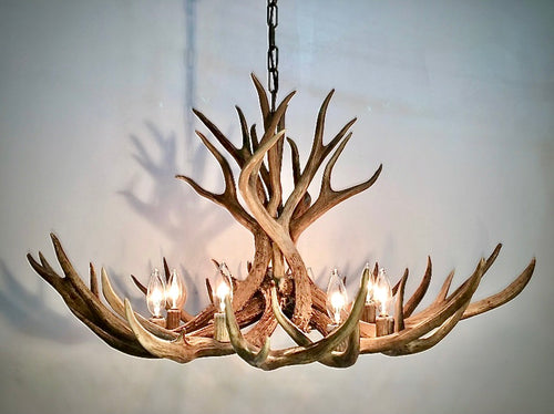 Whitefish Real Mule Deer Antler Chandelier – 36 Inch Rustic Lighting